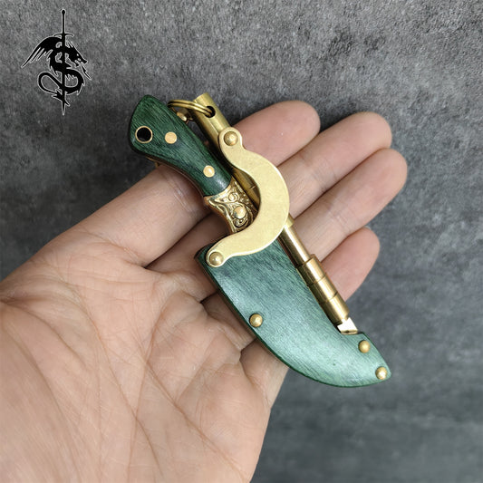 High-End Wood Brass Handle Mini EDC Knife With Sheath