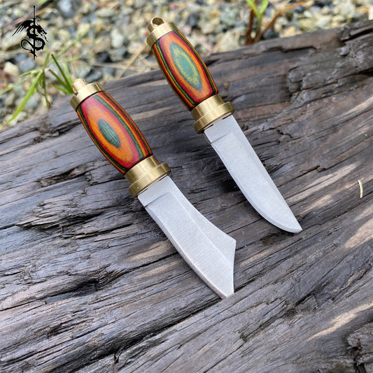 High-End Wood Brass Handle Mini EDC Knife 2 In 1 Pack
