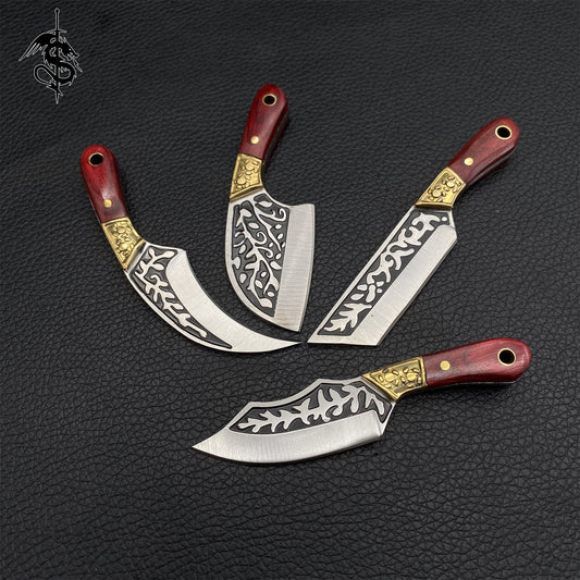 Wood Brass Handle Mini EDC Knife 4 In 1 Pack