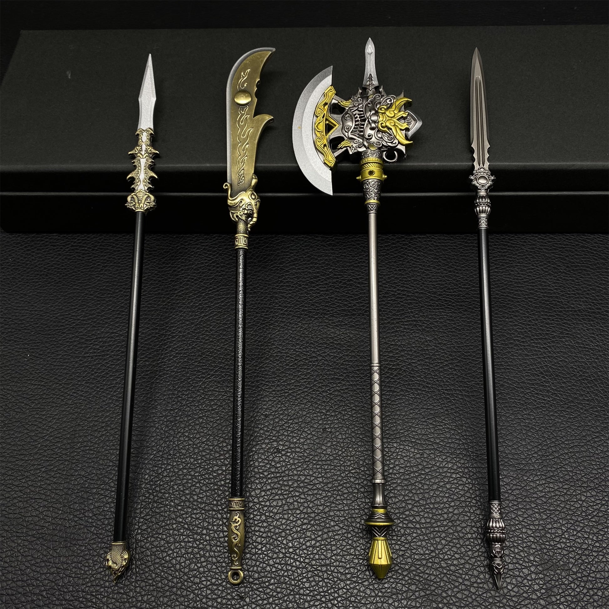 Chinese Ancient Long Handle Axe Spear Metal Miniature 4 in 1 Pack