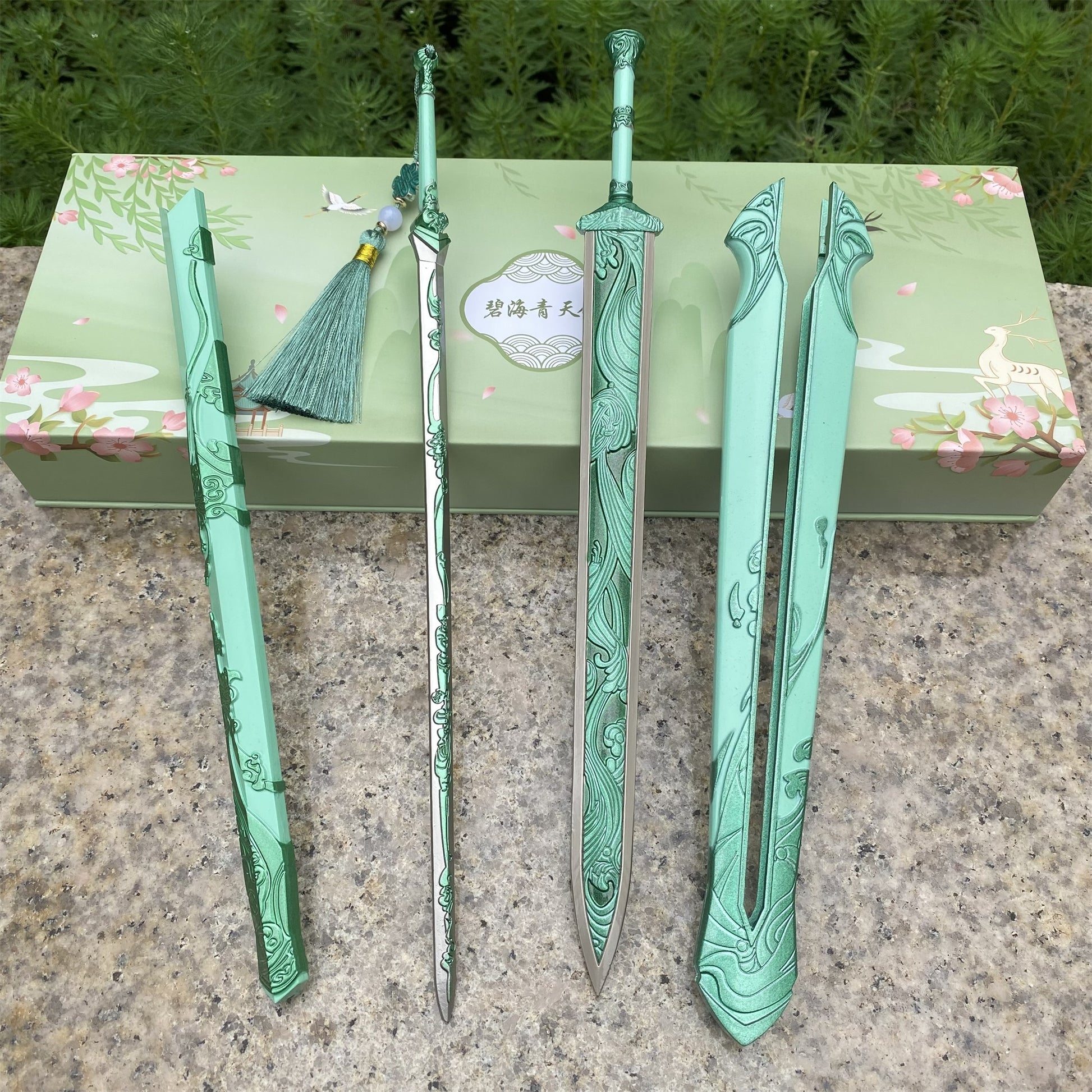 Game Peripheral Green Sea Sword & Cyan Sky Sword 2 In 1 Gift Box Free Display Stand