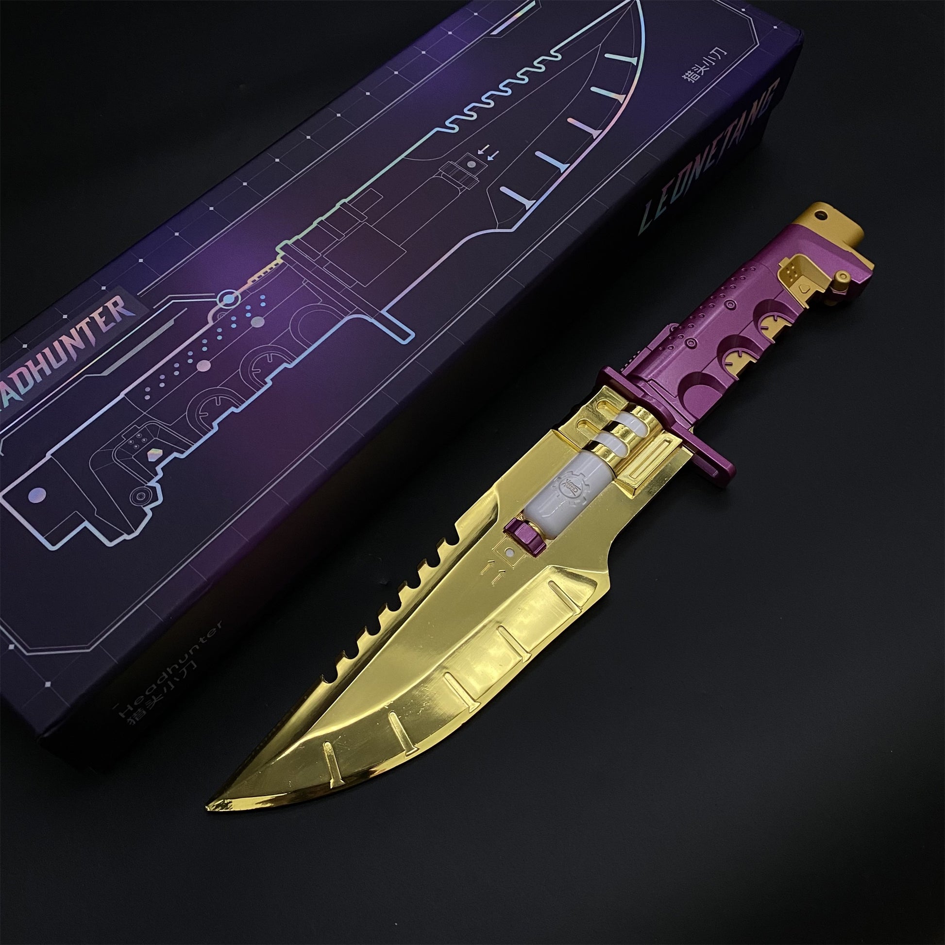 This handmade game knife replica is an amazing decoration for a room, especially for a Cyberpunk-style gaming room.