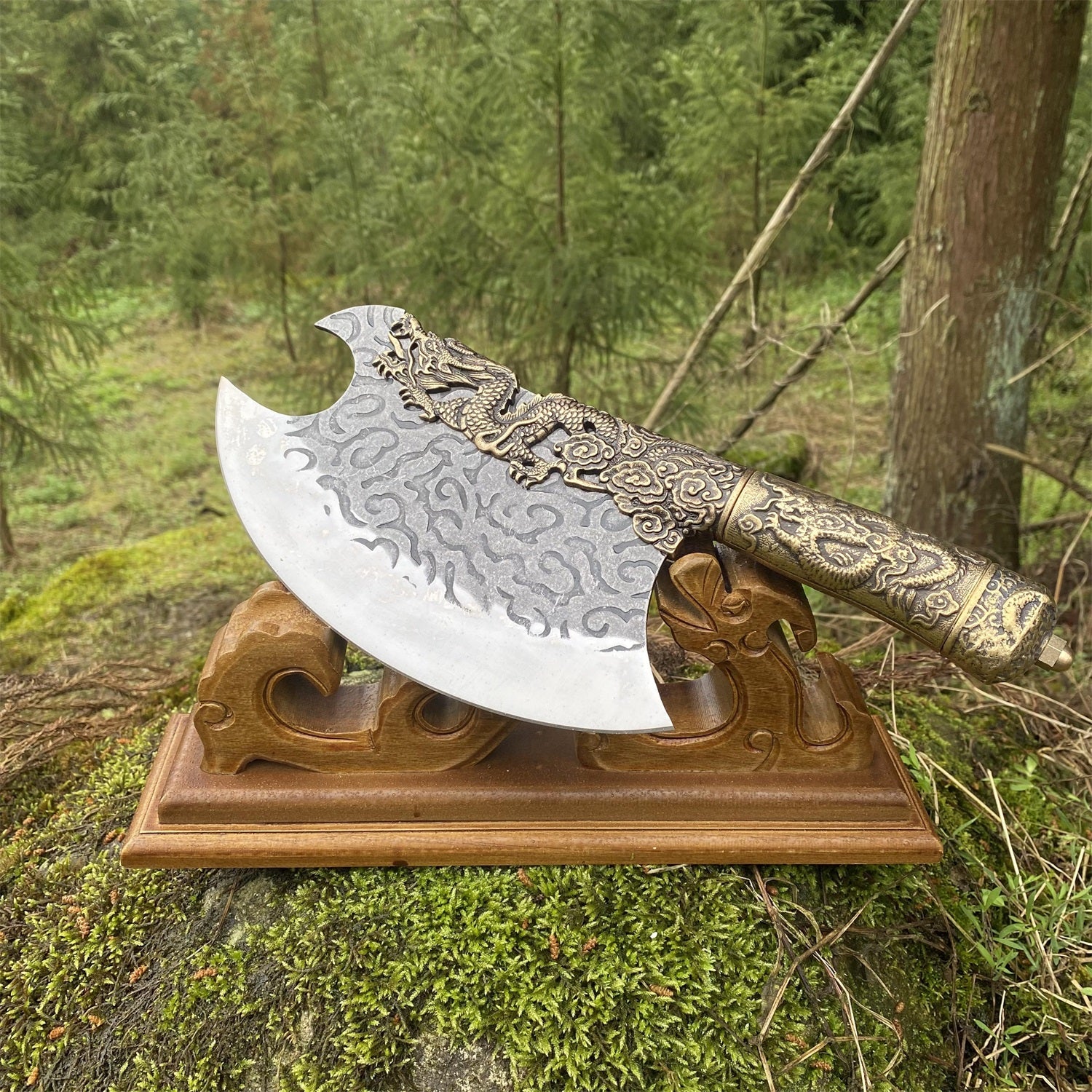 Hand-Forged Brass Dragon Handle Kitchen Knife